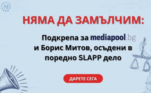 АЕЖ България обеща 4 000 лева от фонда си за правна защита, за да помогне на Mediapool да покрие наложената от съда глоба. Организацията призовава гражданите и привържениците на свободата на словото да дарят останалите 32 000 лв. Средствата ще бъдат използвани изключително за покриване на наказанието, наложено на Медиапул и Митов.
